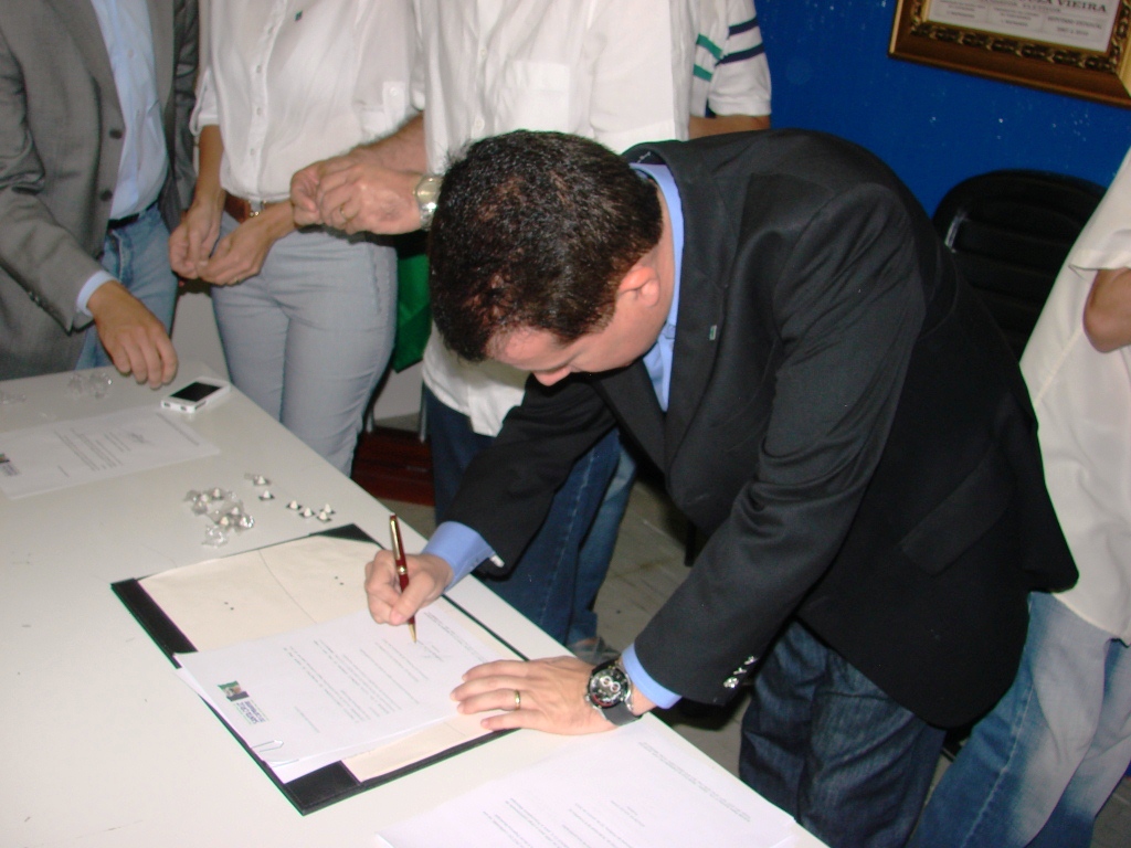 Cada secretário recebeu um broche com o distintivo da bandeira do município.